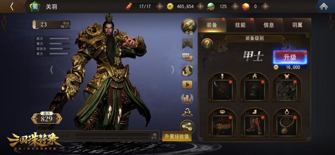 那在武将提升中,最为关键的就是自身等级、星级、装备以及技能四个部分。除技能外,都可以直观的通过战力进行显现。其中,自身等级以及星级是最快的提升方式,等级稳定后,属性适配的装备提升较大。前期来说,星级提升四星前较大,后面资源要求较多,可选取主要将领进行拉取即可,羽翼主打一个锦上添花,可以暂缓换取,主要装备于主要将领即可,且一经装备就无法取下。