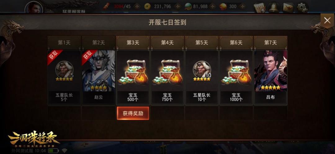 那么,为了助力各位主公早日拥有强力将领,现在在开服七日活动中,第三天即可获得10个五星队长,还有每日登录福利,第一天、第十天,分别可获得5个五星队长以及10个五星队长;在签到送好礼活动中,登录第二天、第4天、第7天,分别可获得10个万夫长、10个万夫长以及10个五星队长。