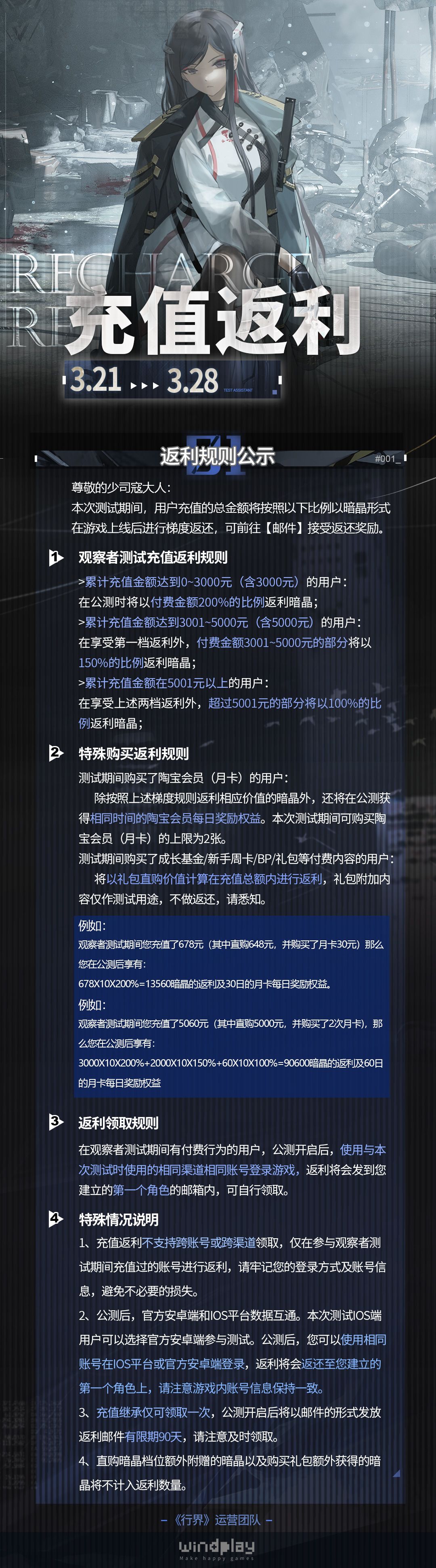 「观察者测试」充值返利规则