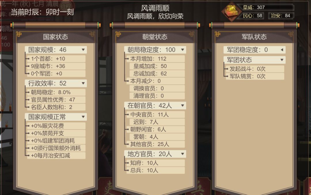 ◆现在将会在朝堂显示您的国家状态,这是一份来自系统的评价。