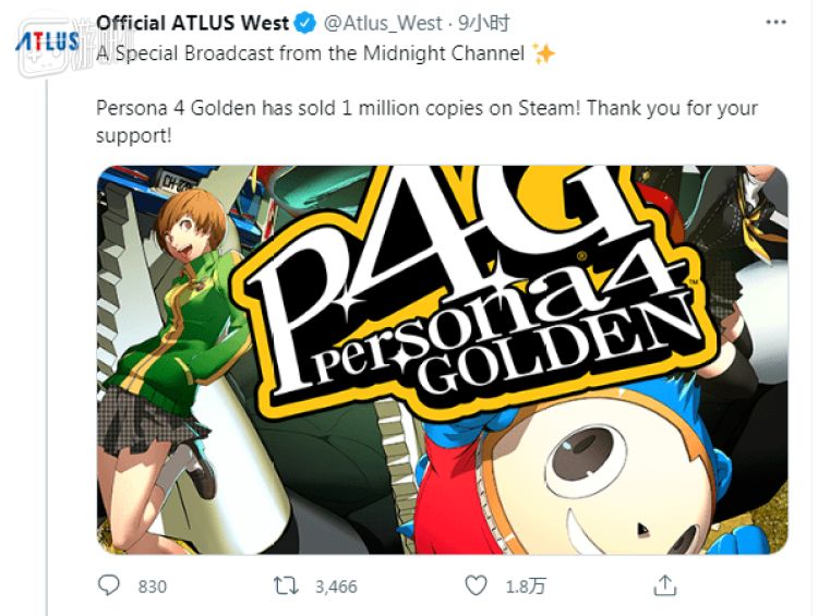 在移植PC平台一年的时候,P4G在Steam上的销量就超过了百万,作为旧作的高清复刻,这个销量相当惊人
