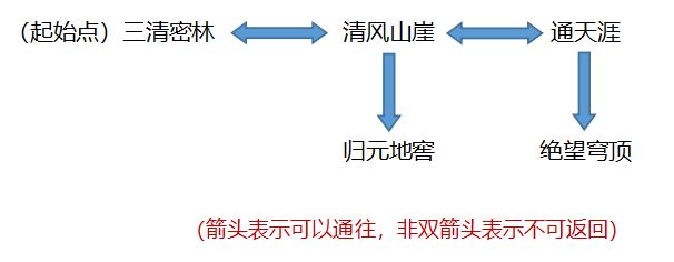 (4)通天涯回到清风山崖:通天涯(0,12)(0,13)(0,14).