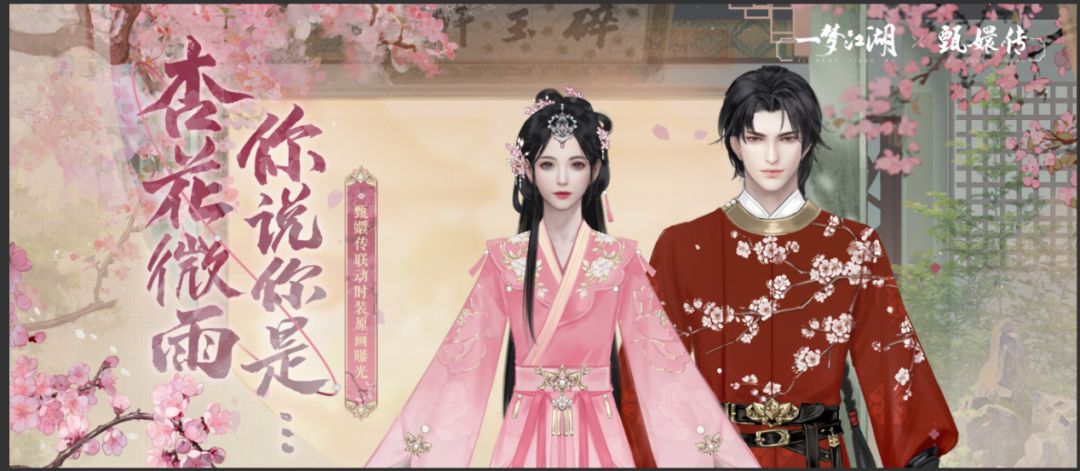 杏花微雨,三月初霁。《一梦江湖》与国民级电视剧《甄嬛传》浪漫相遇,为少侠们带来了华美精致的联动外观!不仅有潇洒的男装·笛落梅与柔美的女装·舞惊鸿,还有万众期待的动作·惊鸿舞与诸多浪漫联动挂件、趣味玩具等江湖好物在等着少侠们,这个春天,快来江湖感受宫廷与武侠的交汇之美吧~