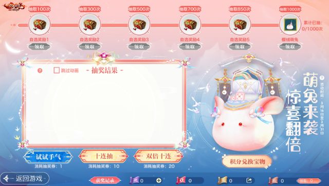 全新坐骑·樱绒萌兔明日正式萌动来袭,少侠们在3月16日-3月31日期间参与【江湖秘宝】即有机会获取!