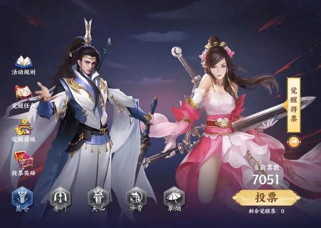 3月15日-3月20日期间,少侠们可在游戏内点击【门派觉醒】按钮进入投票现场。