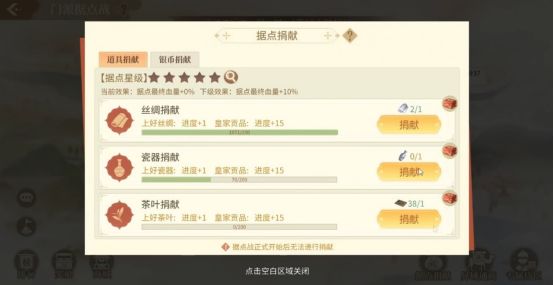 同时在【据点捐献】中,还可以直接使用银币进行捐献。