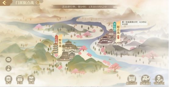 门派据点战分为准备阶段、野外战、据点战和通商四个阶段。活动共计6天时间