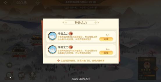 另外,据点战时,主上还可以使用神兽之令,发动神兽之力,直接对敌方据点造成总耐久5%的伤害。