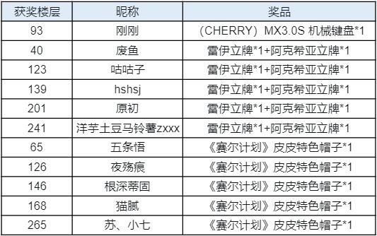 二、 本次活动将随机抽取楼层获得本次活动奖励,若所抽取的楼层回复内容不符合参与方式要求,则顺延至下一位符合要求的楼层。