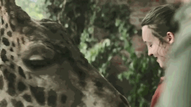 然而随着剧组照片的不断放出,人们渐渐意识到,剧中出演的是一头真正的长颈鹿,可以算得上是“素颜出镜”。