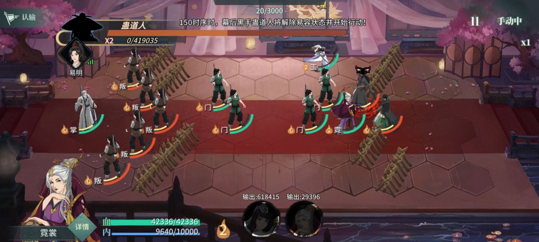 要点:霓裳必须移动为0,如果减三移动就要身法在201以下,必须使用钩镰神枪。玉真移动距离必须为1,如果为2,就会往左边打。