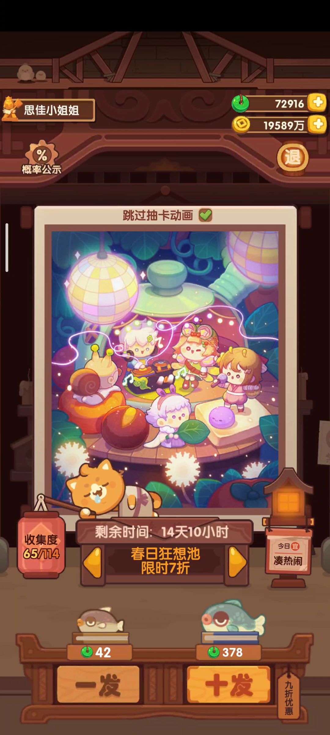一开始没抽之前是72916,抽到了49142,花了23774抽完了“春日狂想”。接着就想补池了。