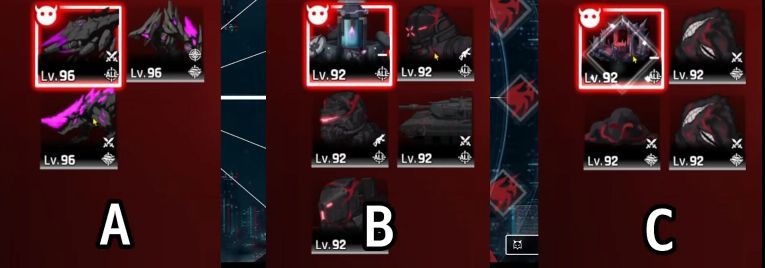 分为ABC三类敌人,(打前确认敌人信息)A类敌人上制裁队,B类敌人上士兵或机械队,C类敌人(触手和祭坛)(会眩晕和敌人同职业的我方人员)上两个狙或士兵队速推,尤其是34层BOSS(C类)难度相当高,这关Boss会眩晕我方突击和辅助,推荐上斗牛士船士兵队管盾+守望者+无影脚
