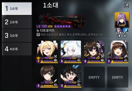 最后附上50层阵容,这套阵容50层纯自动大概是八成左右通过率吧,有时候全程没有一个非战斗点或者自动选了副作用神器buff会翻,还有就是比较吃配置,需要道中打的够快。还有一种选择就是开强袭自动,那就是100%通过率了。国服没联动卡,可以换 随便换个射手,只有第四队不能变,前三队角色换同类就行。