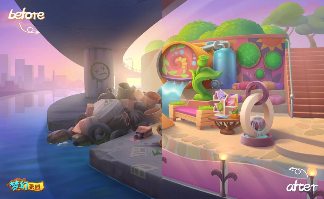 最终实现堤岸的梦幻变身,水源重回干净清澈,环境收获众人喜爱