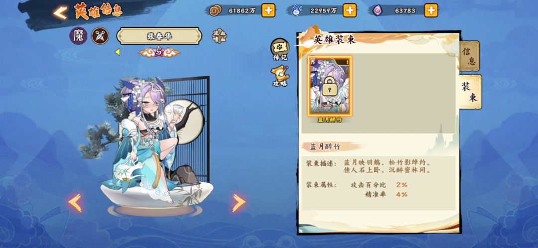 张春华,攻高血低,典型刺客面板。上一名魔刺聂隐娘强度被大家所诟病,鲜有人用。这次的春华强度不俗,我魔族又新添一名猛将。