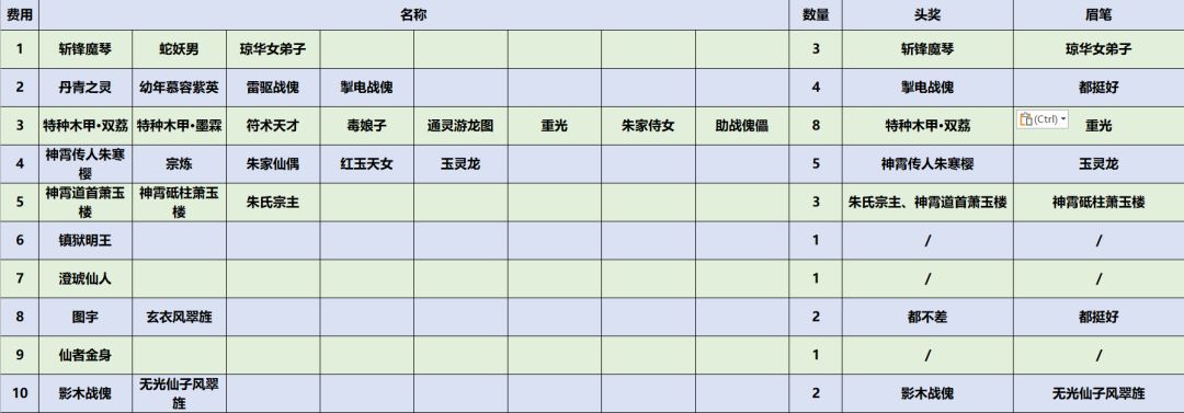 依表来看即便是全属性改铸8费也是综合最强的,掣电战傀和澄琥仙人和图宇是核心中的核心。