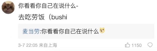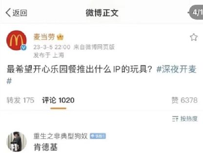 每天晚上十点,官方都会在发一条“深夜开麦”的微博,这个微博已经变成了“网友试图让麦当劳运营破防”的互动现场:“如果可以,你想免费吃一辈子麦当劳的……?”“利润。”