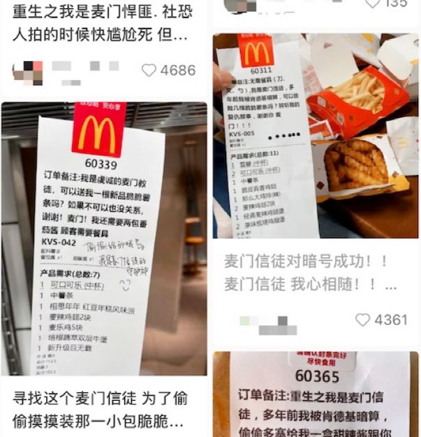 如何获得麦门的庇护呢?点外卖的时候,在附言区域留下:“我是麦门子弟,请送我一两根今天的薯条,坚定麦门信仰。”麦当劳的员工看到,就会奉行神的旨意,用额外的薯条和番茄酱包,带来酥脆的福音。
