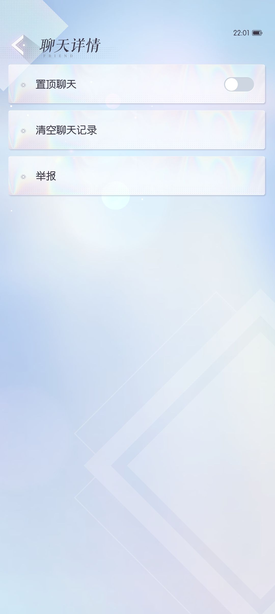 点击好友头像右边的空白进入(不是点头像哦)可以给好友发信息,上面的是历史会话。可以发文字语音表情表情包等(详细内容见聊天系统)可以看到双方的头像和气泡等,点击右上角的三个点,可以进行聊天置顶、清理聊天记录和举报等操作。
