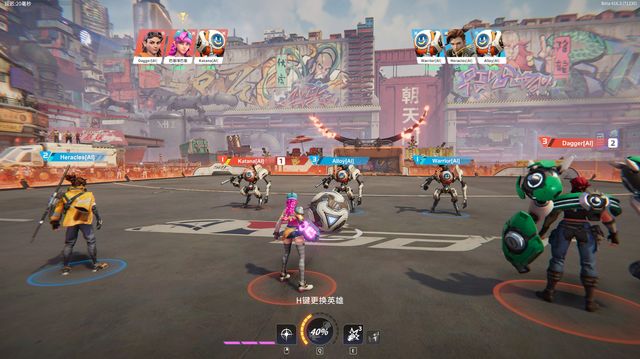 当时游戏内测阶段只开启了联机玩法,正式版本会有单人的经营模式,可以让你训练出属于自己的精英阵容。而联机玩法分为国服匹配以及全球玩家进行匹配,默认的匹配玩法是3V3。每个角色会有专属的技能效果,鼠标左键把球击飞出去,也能直接从别人手里抢断,右键可以使用专属技能,有的英雄是会快速突进,有的则是会直接攻击对方,甚至还有会轻功的英雄。只是这些元素还远远不够,每个英雄在上场的时候可以携带两个不同的道具,同时场内还会不断地刷新道具以及补充能量的道具。