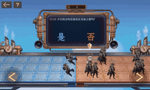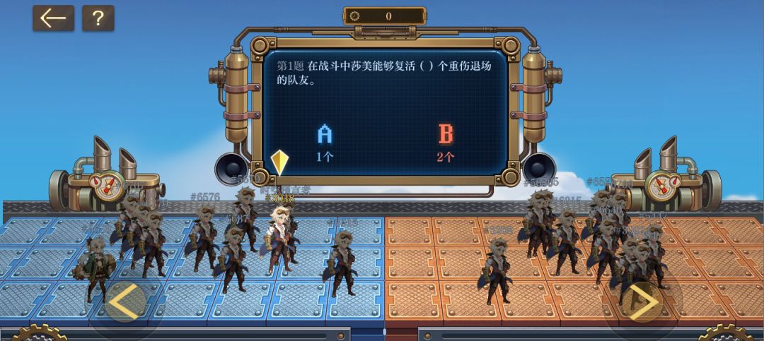 每道题目倒计时结束前可以随意切换答案选项。当倒计时结束时,错误答案区域的平台会爆炸淘汰掉选择该项的所有冒险者。
