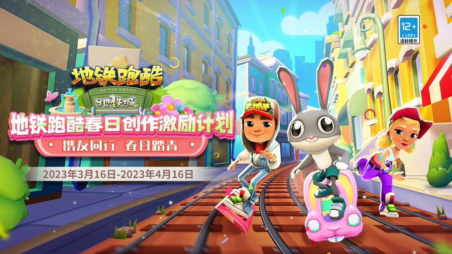 2023年3月16日-2023年4月16日期间,将原创非搬运的地铁跑酷主题内容创作,带#地铁跑酷春日创作激励计划 ##地铁跑酷三人行#话题发布至抖音、快手、小红书、B站、西瓜视频,并@地铁跑酷官方