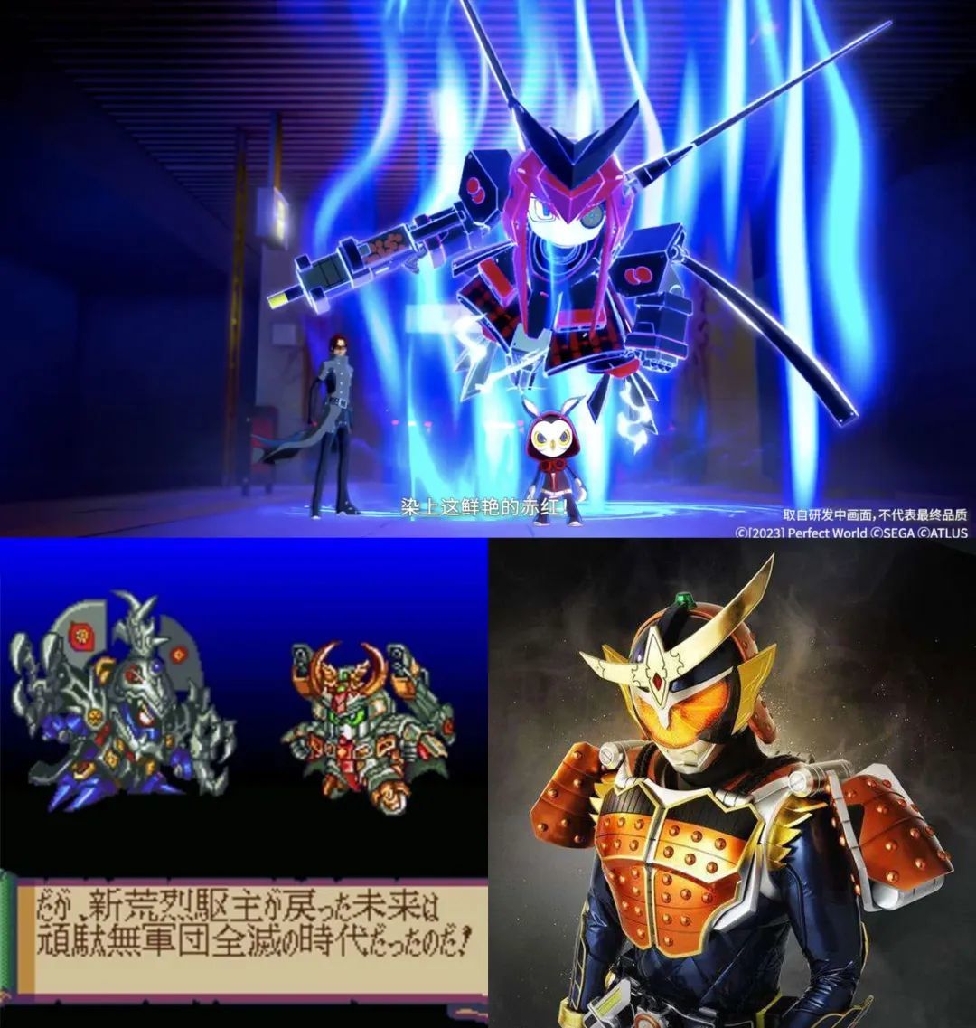 而全身都是梗的猫头鹰路菲尔的人格面具则更直接致敬了SD高达的形象,可能是参考了《新SD战国传》,不过考虑到它本身捏他的假面骑士,加上人格面具大将军的外观,可能也融合了假面骑士铠武的形象。