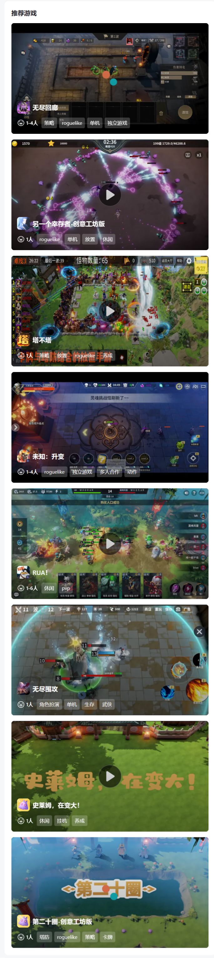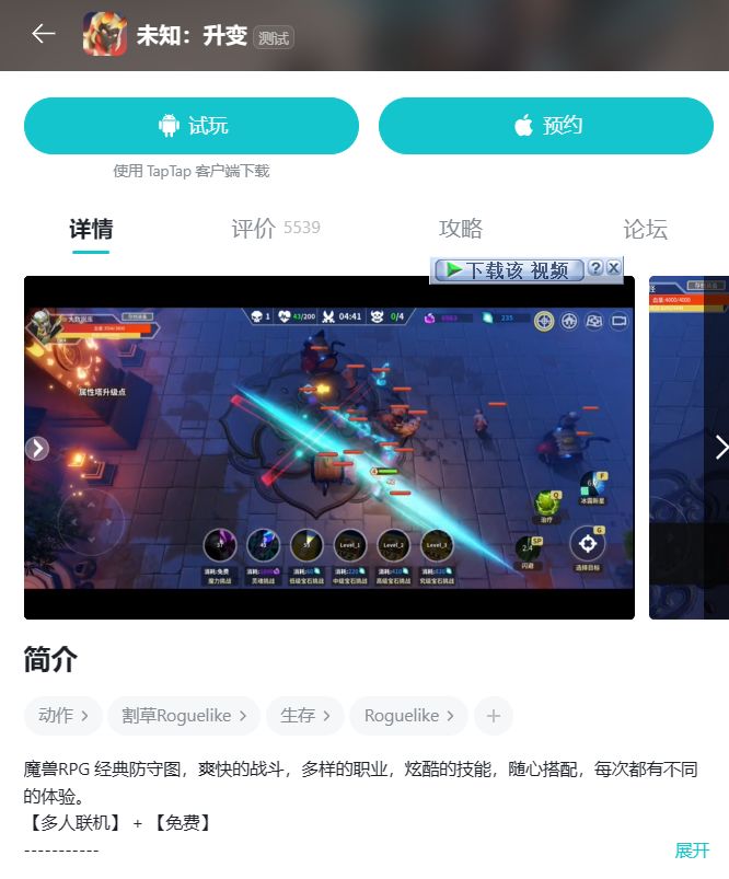 这款游戏虽然是2022-03-02才上传至TapTap的,但有可能是第一款魔兽rpg手游防守图,防守图在手游上发展的太慢了。这款游戏主要就是打怪赌技能,升装备,然后还会掉落存档装备。不过这个厂商确实是个实力派,已经出2了。