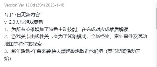 不同于战就战的凉凉,这款游戏上次更新时间为 2023-01-18