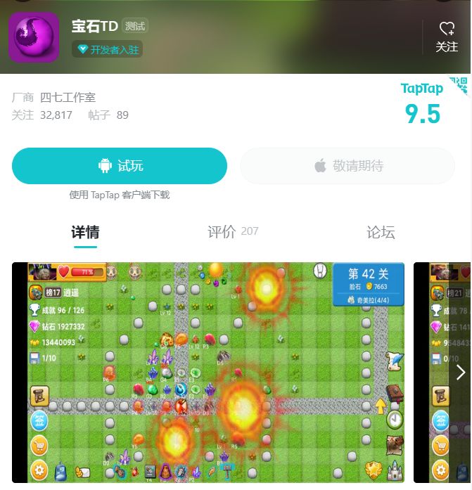 这款手游也是来自魔兽rpg同名游戏“宝石TD",同样是比较早的几款魔兽rpg手游,甚至说是最早的。TapTap显示最早上传时间为 2017-02-15 。