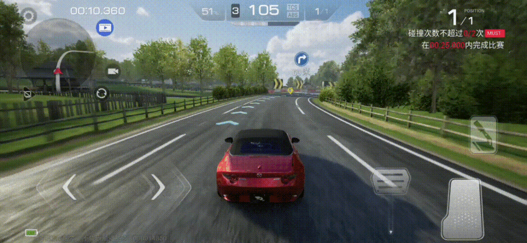 不要小看抓地过弯,打开声音仔细感受,走线带来的体验感并不会输给漂移。在前方出现弯道提示时,可以根据指示的弯道角度选择合适的过弯方式。