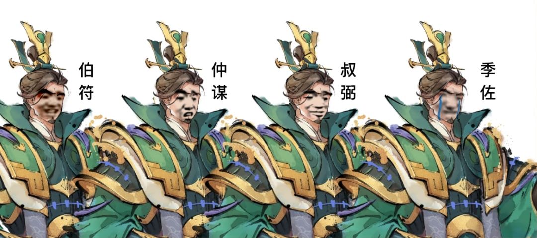 而字一般也会隐藏一些这个人物的信息,比如说,字里面常见的“孟”“伯”比如曹孟德,意思一般就是指长子了。次子一般称会在字里面加个“仲”,家里排老三嘛,就加个“叔”。老四就加个”季”。最为经典的案例就是三国里面,孙权一家了:孙策字:伯符,孙权字:仲谋,孙翊字:叔弼,孙匡字:季佐。