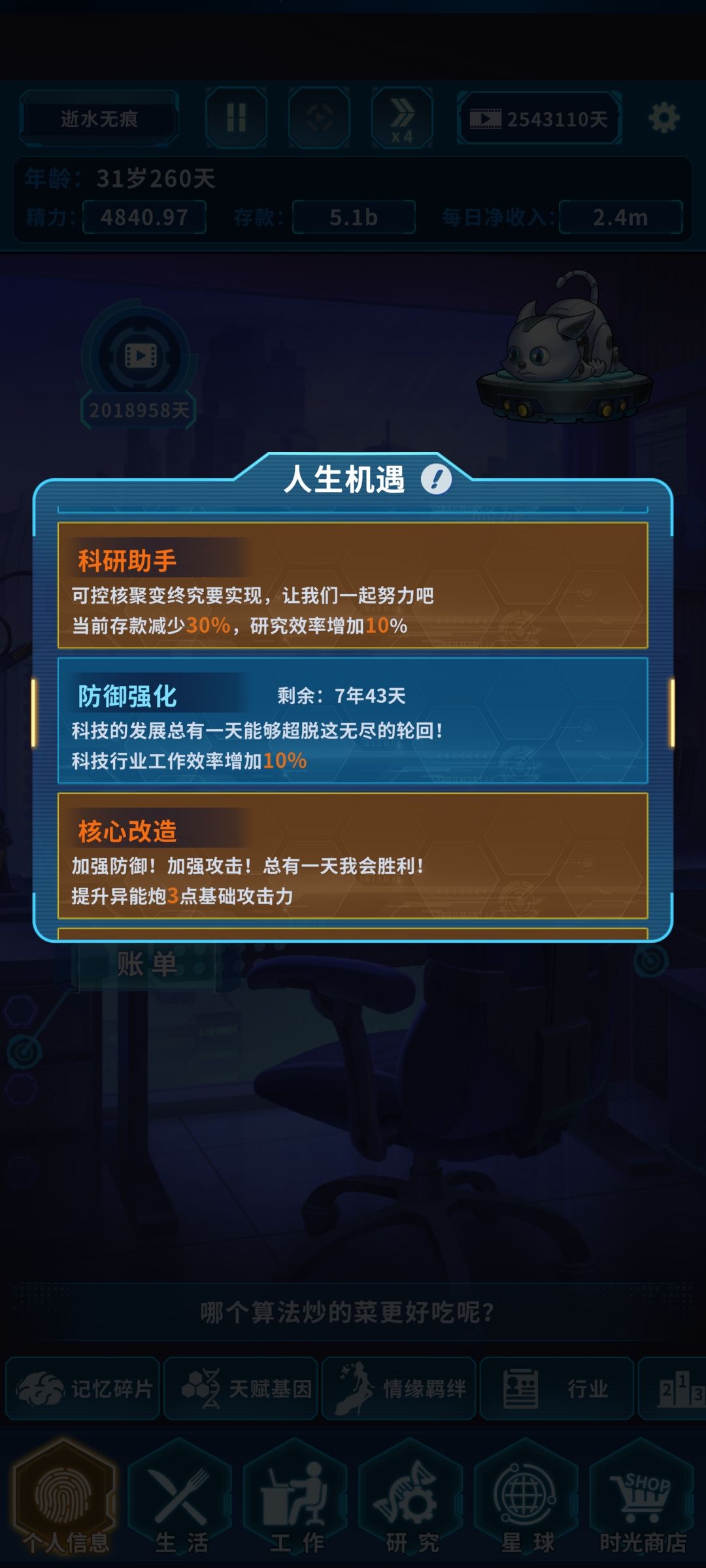 1:投身科技(商业赚钱减10%研究效率+10%)(10年)