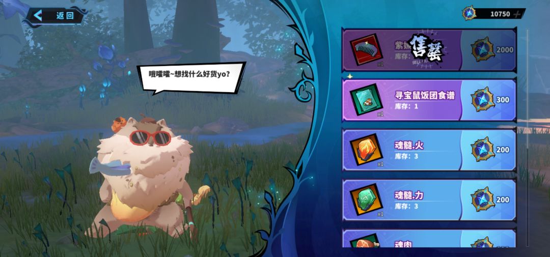 接下来讲一下食物饮料与菜谱。就不一一介绍了,每种食物都有其对应的属性,大家可以在游戏里自己看一下,通关必备,让你超长发挥,拉高自己的战力,灵海值,弥补伤害不足,恢复不够,冷却时间长等缺点抵御各种Dbuff,而获得食物的关键就是在菜谱里了。菜谱里的材料每个关卡都会随机爆出,偶尔也会直接出食物,只要满足了菜谱的材料并且获得了该菜谱就可以在篝火处烹饪自己的佳肴。菜谱的获得在旁边的松鼠商人处获得了,没有松鼠商人怎么办,别急,多通关几次就会看到了,松鼠商人会不定期的刷新商品,而且在里边选择关卡的时候也可以选择商人,会有些商品,抽奖券的(个人觉得这里比黑市卖的贵,不太合理,因为本身就是游戏里不容易遇到的,应该有惊喜,但是一看价格倒没黑市便宜就有点难受)!而松鼠商人会刷新一些特别的收藏物比如紫嫣梳,蓝银皇戒指💍(这些物品里如果你知道斗罗大陆的话会发现这些特殊物品真的挺用心,不枉这次联动,梦回斗罗啊[嗒啦啦4_破防])每个特殊物品可以开启特殊的剧情故事。而观看完故事会得到奖励与收藏积分(收藏积分可以获得该项目里的积分奖励,抽奖券与锤子勋章)可以点击地图里的游纪,里边内容就都看得见了。