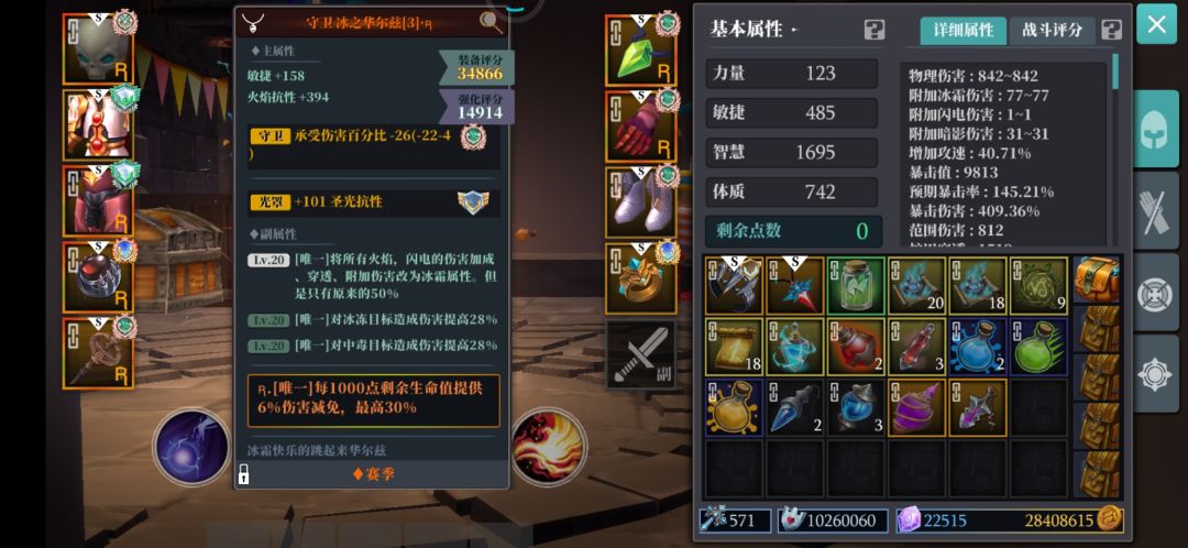 ○戒指→极寒/魔法,内甲:极寒/魔法/暴怒