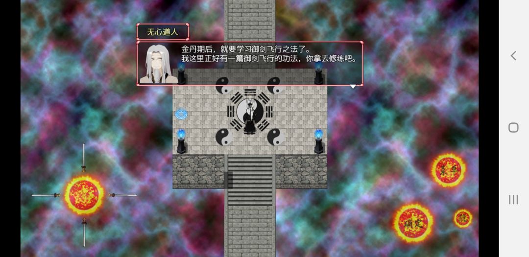 ①进入金丹对话老头获得御剑飞行,使用技能(隐藏按键触摸使用)回到门派