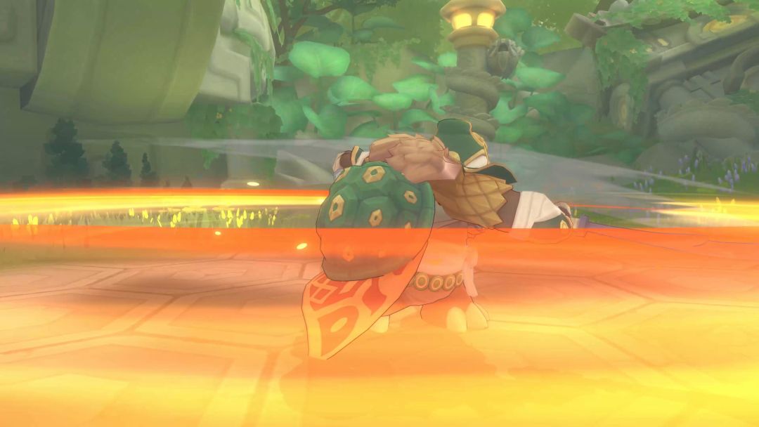 乌龟将军有着与笨拙外表大不相同的身手,不管是跳跃攻击还是冲锋都不在话下。值得注意的是,受到乌龟将军的冲锋攻击后,冒险者有概率进入眩晕状态。此外,冒险者需要小心跳跃攻击后高概率衔接的旋风斩。