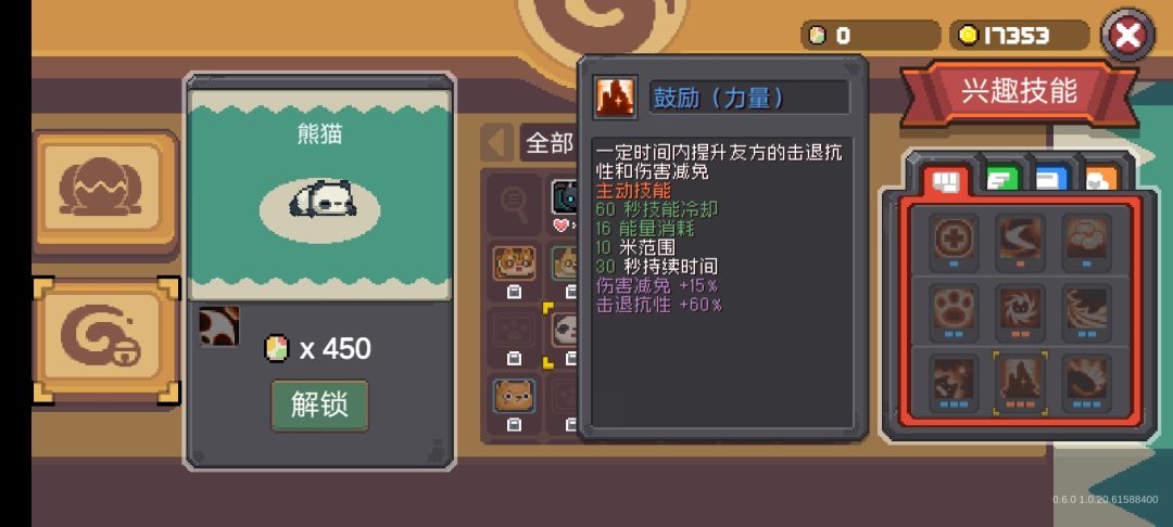 熊是力量属性,所以学习第1页的力量技能全部消耗减1,只需要3格就能学习力量鼓舞