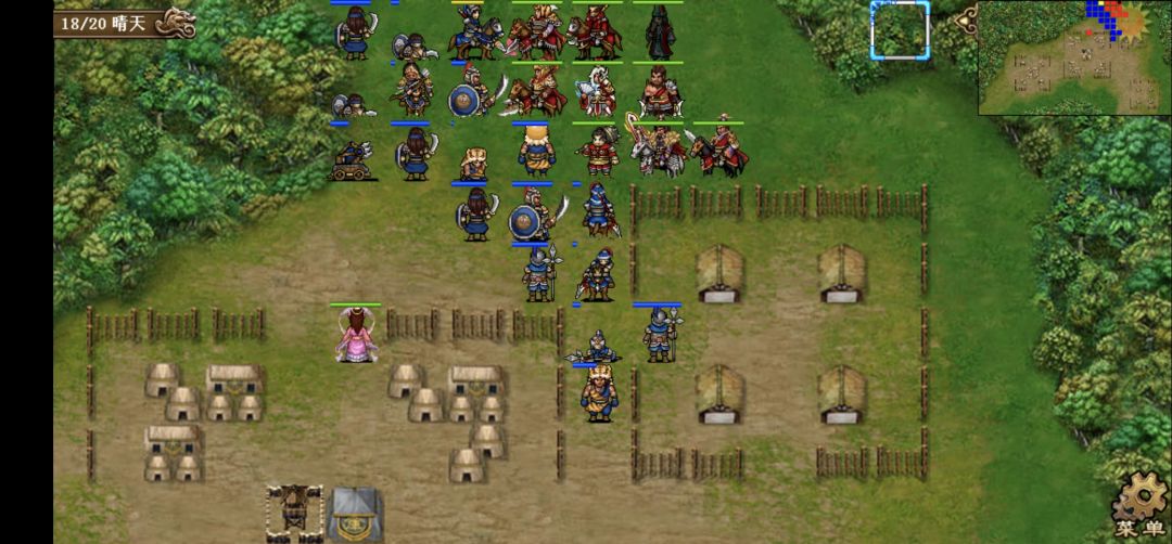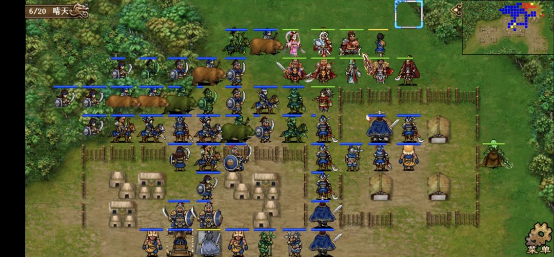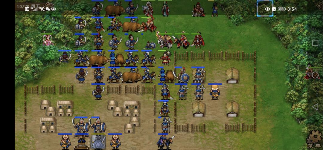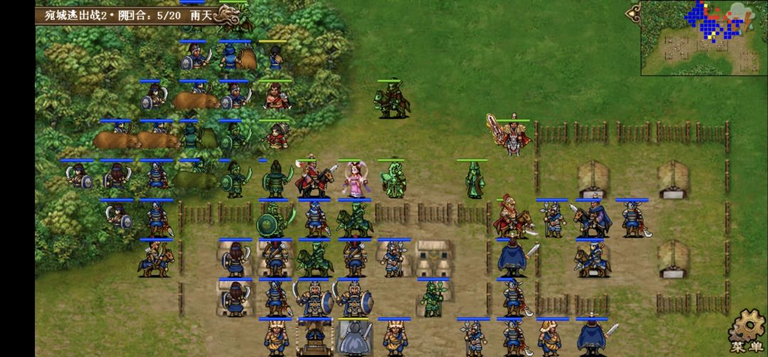 第一回合,所有人边攻击边向右上角移动,貂蝉魅惑中间主营一个小兵给张合一个攻击位砍四下医师。典韦单独在中间敌主营左边上挑拨降医师防的同时也免得胡车儿挡住我军撤退的道路。