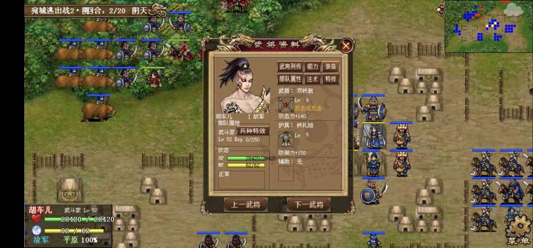 由此也进入到我军最擅长局面,后边就没什么好说的了疯狂输出啊,大夏每回合咒骂,配合张合双动、典韦连击触发同仇,14回合才点死胡车儿,这血还能再长点吗.......。15回合敌军减少到一定程度,贾诩张绣出击,张合优先击杀贾诩,最终20回合过关,贴图略过。