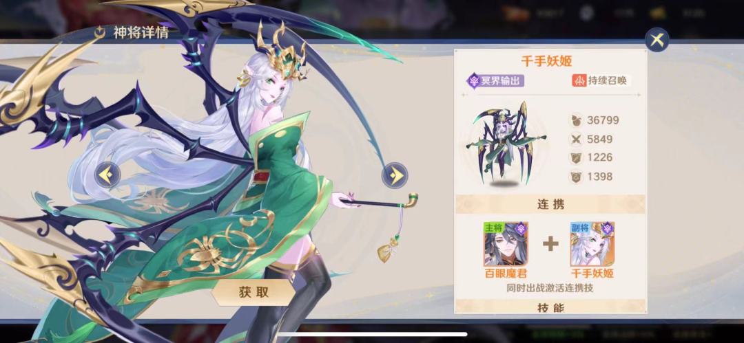 冥界输出,为数不多的AOE角色技能可对敌方全体造成82%的物理伤害;技能释放后50%概率增加1次普通攻击,配合其它增加攻击次数的道具可以产后生更高的输出【TOP2】千手妖姬