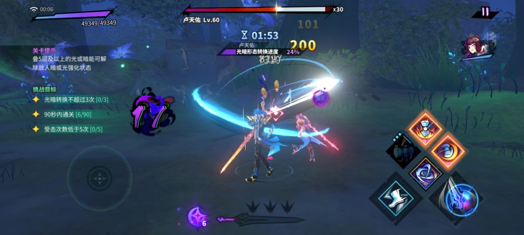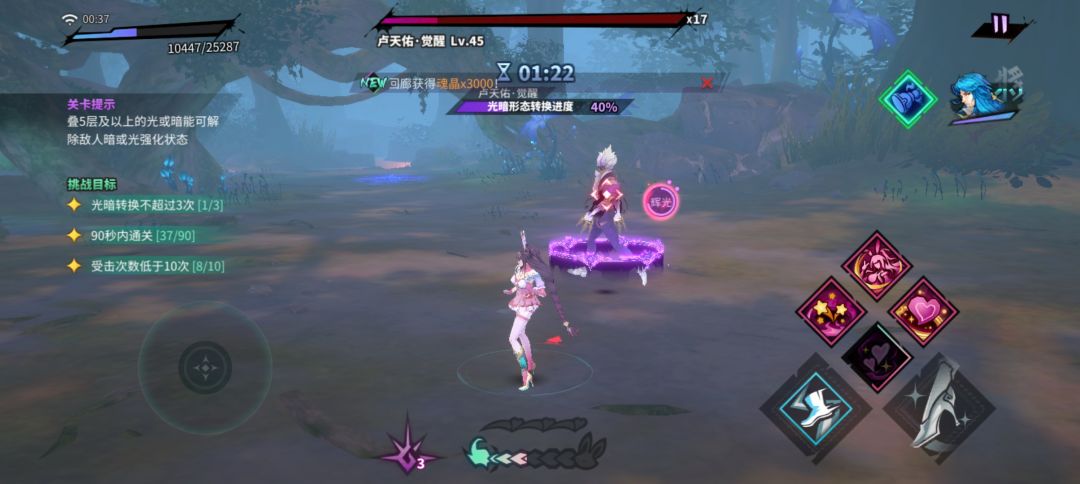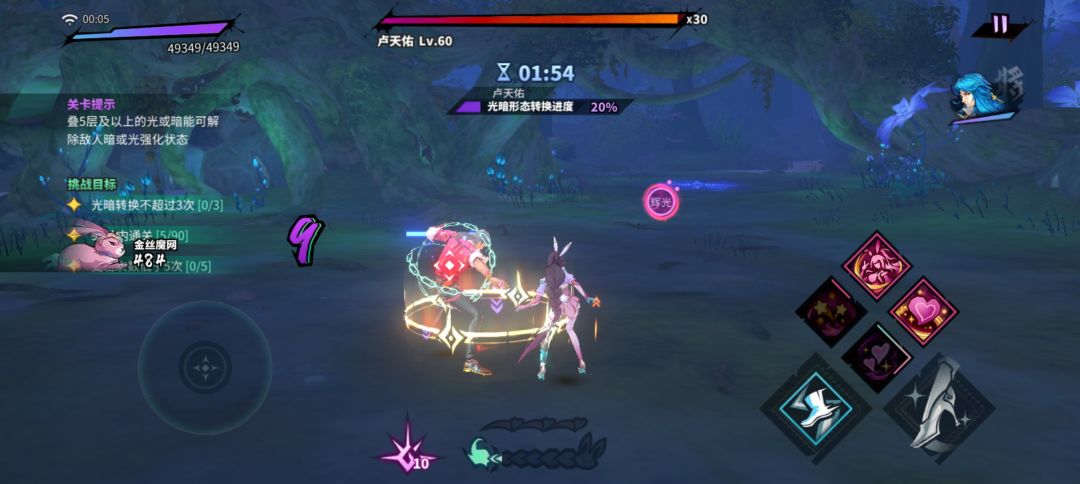 关卡难度挺低的,主要是让大家了解光暗队的机制,打完这个本相信你就初步的了解了新的光暗队