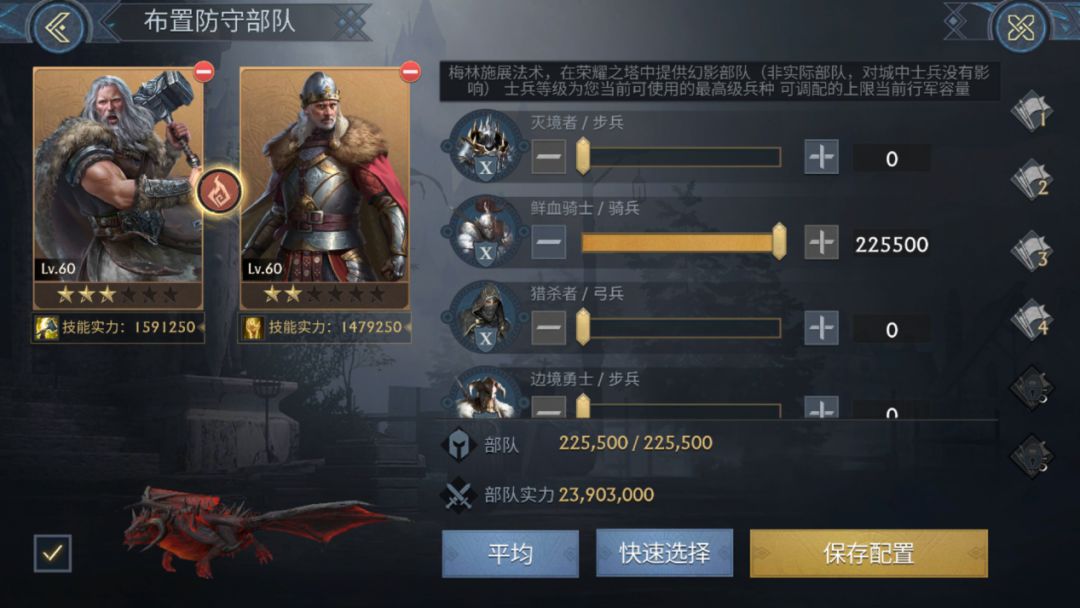 在荣耀锦标赛中布置的防守部队并非实际部队,即使在比赛中死亡了也不会对实际部队造成影响,同时里面士兵的等级为当前可使用的最高等级兵种,每个等级的兵种可调配的数量为当前的行军容量,这样就不会因为缺少实际部队而导致战力下降,可以自由进行兵种搭配。