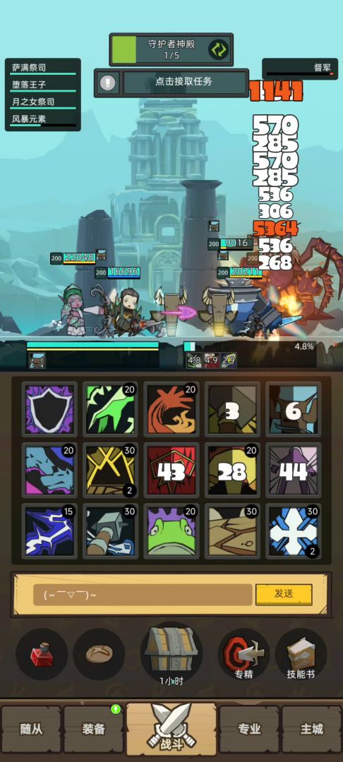 另外就是随从方面,带个前排,输出面板高,就堕落王子攻速光环+女祭司攻击光环,或者血骑士+女祭司。。输出面板不高求问,就带奶+任意突破几次的前排。。我这个才突了两次的孝子不带奶都能抗。。。