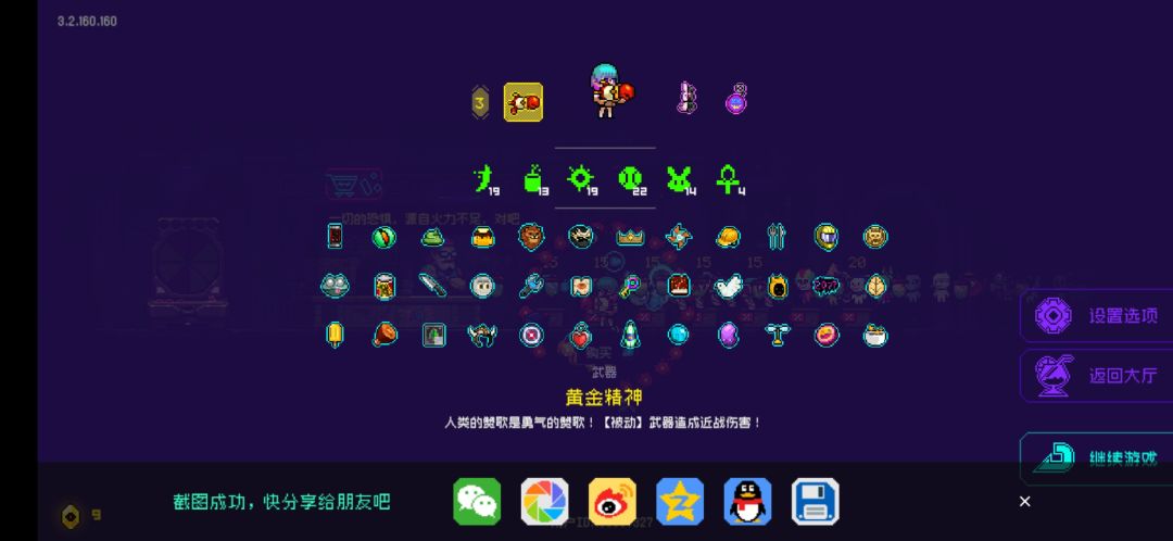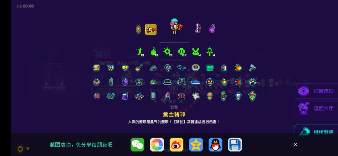 英雄建议选沙耶,然后纪念品随便选两个近战纪念品,为的是在关卡中提高近战相关的纪念品的掉落概率,尤其是“能量剑”。中途商店可以考虑把武器“黄金精神”刷出来买了,这样后期全靠“黄金精神”输出,攻击既有近战属性还有常规枪械属性,打怪疯狂掉物品,打BOSS不超过10秒。