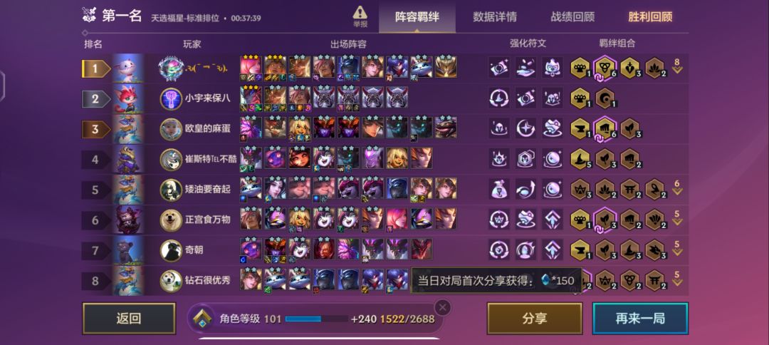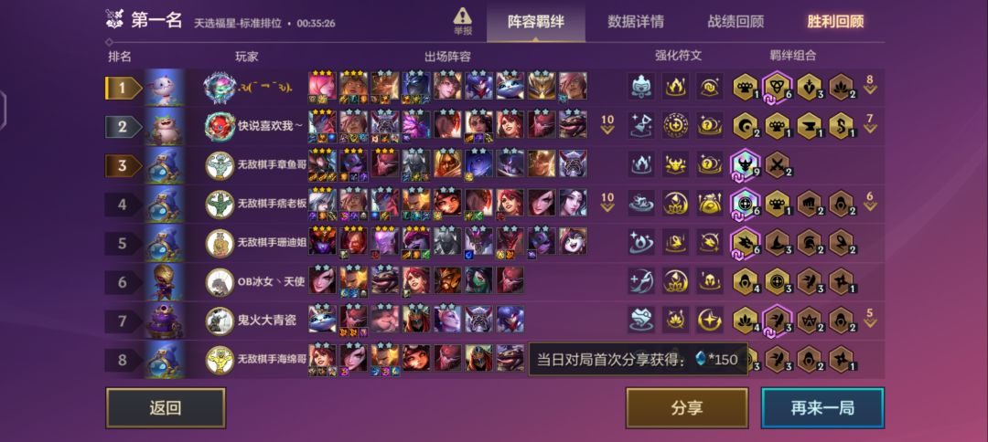 我愿称裁决天使为福星最强阵容之一,个人玩福星玩的不多,只玩了不到二十把,但是只要玩裁决天使基本都是吃鸡,最次也是第二,话不多说看战绩