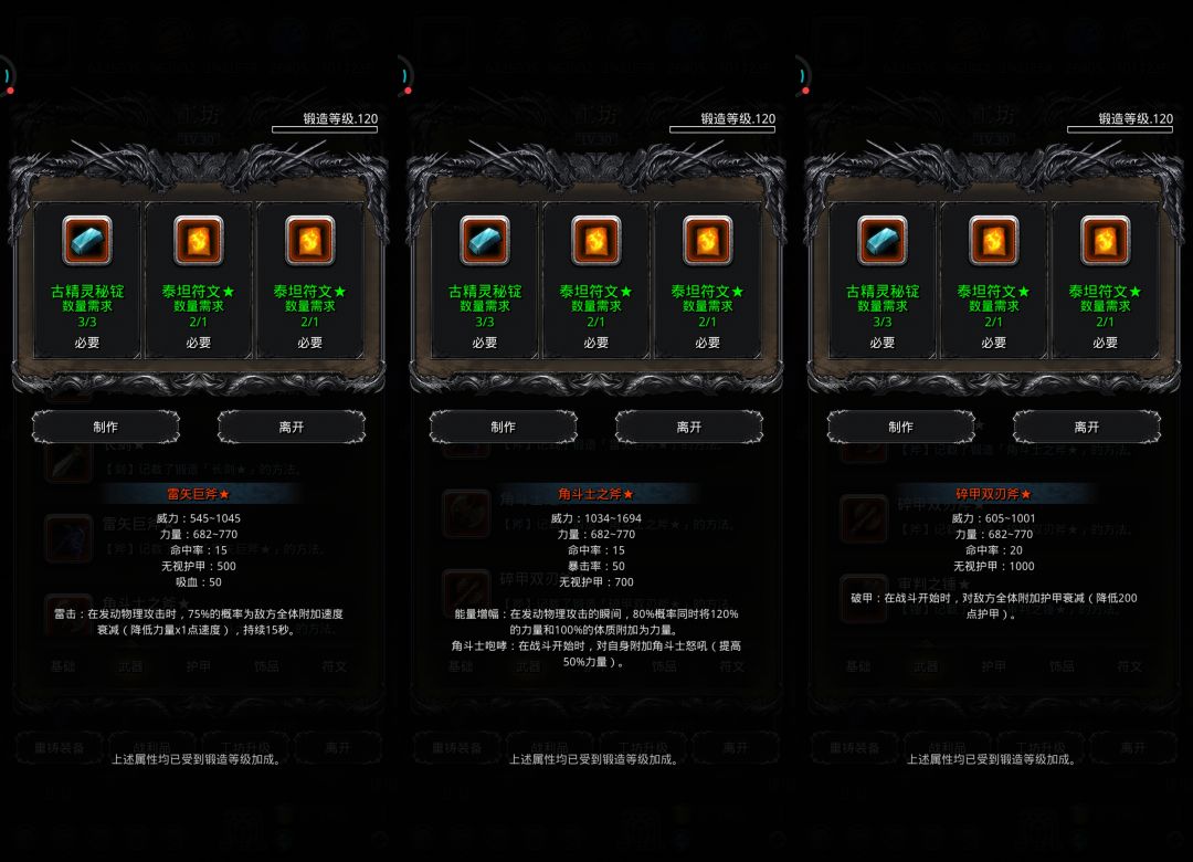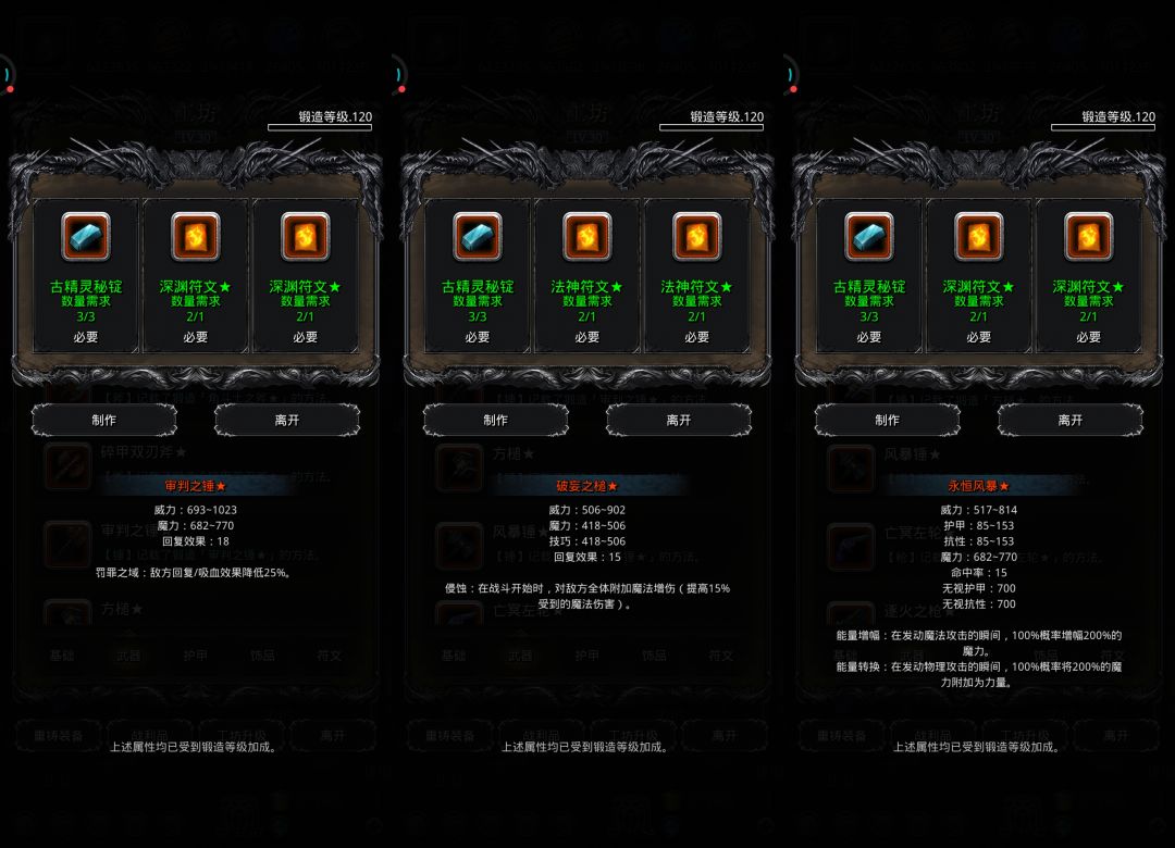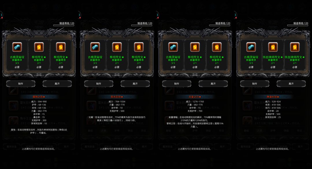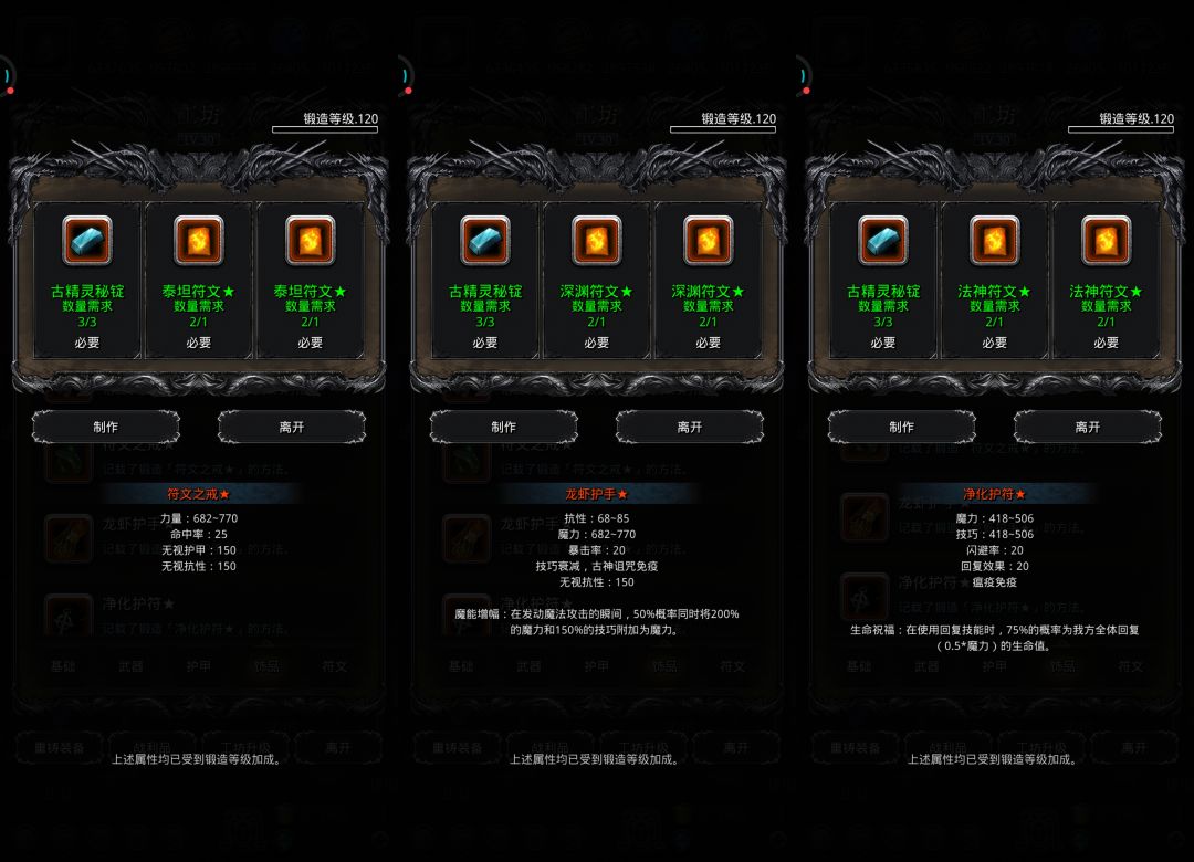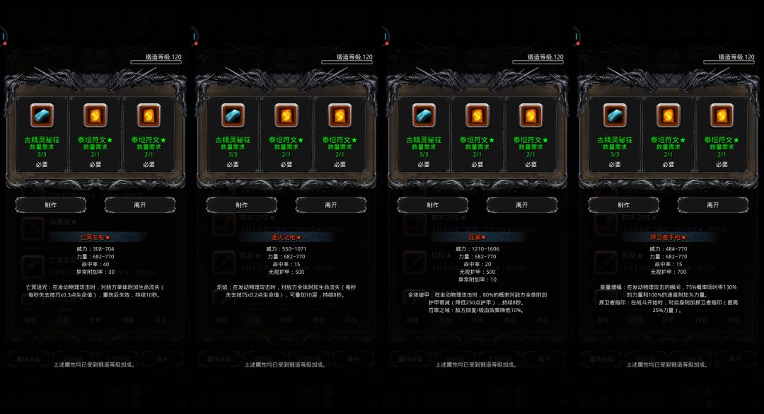 ♦特别提示:部分装备有卸负词条未显示,实际打造后有卸负值,不用担心。