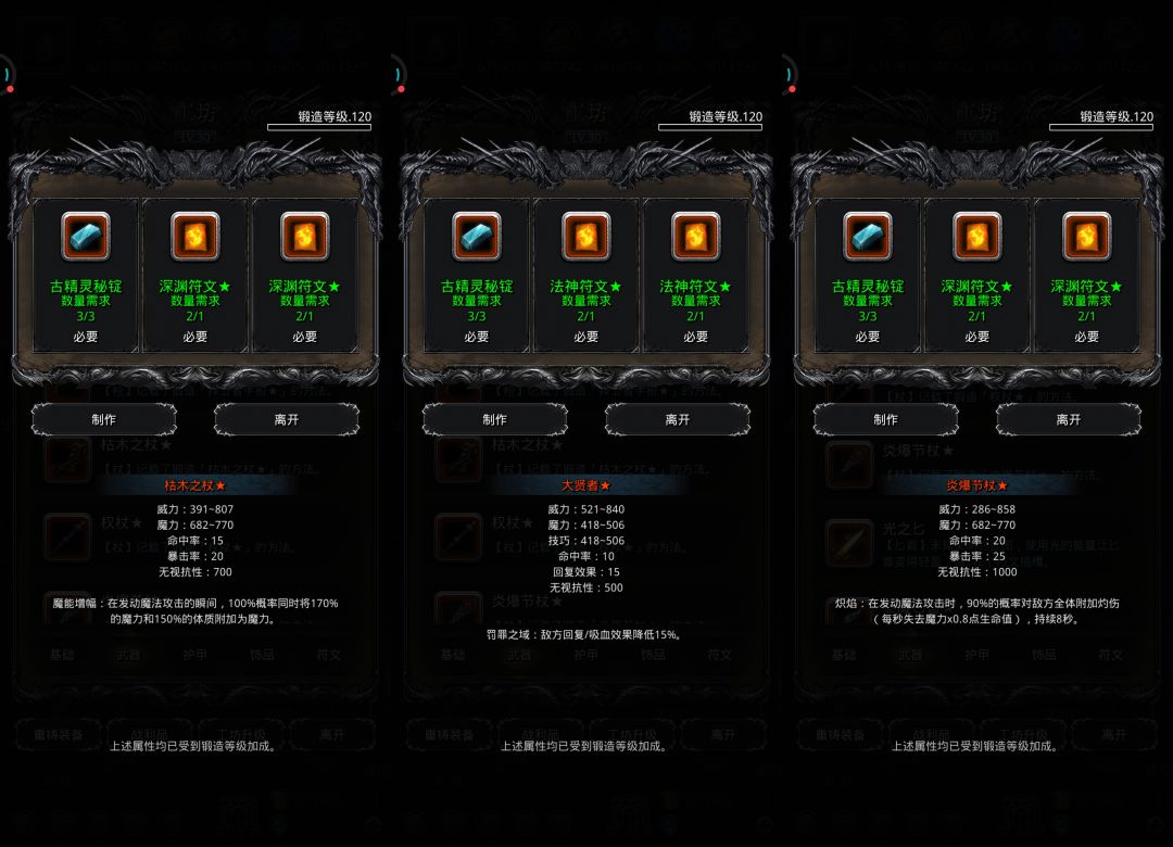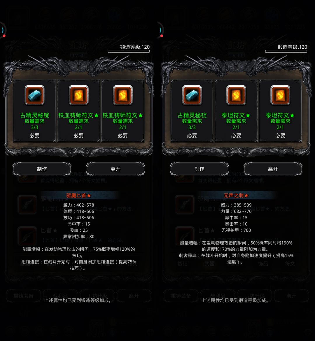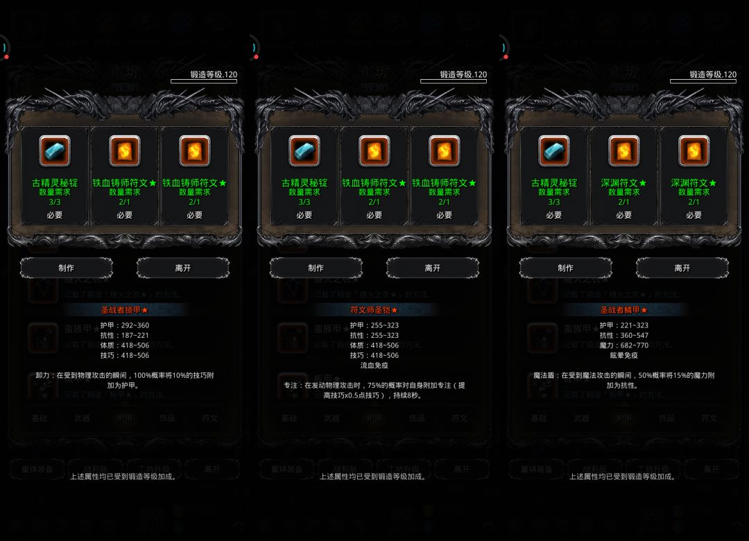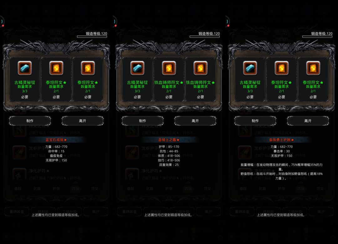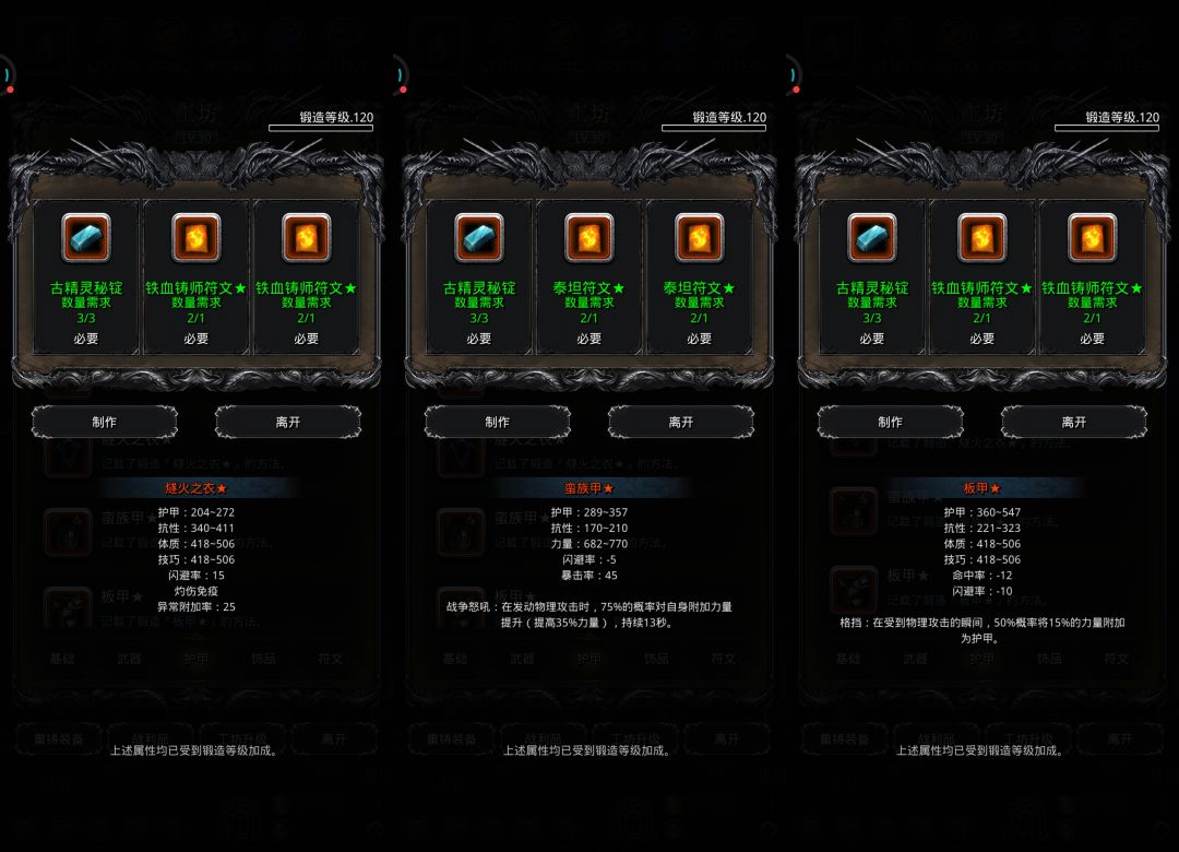 ♦特别提示:部分装备有卸负词条未显示,实际打造后有卸负值,不用担心。