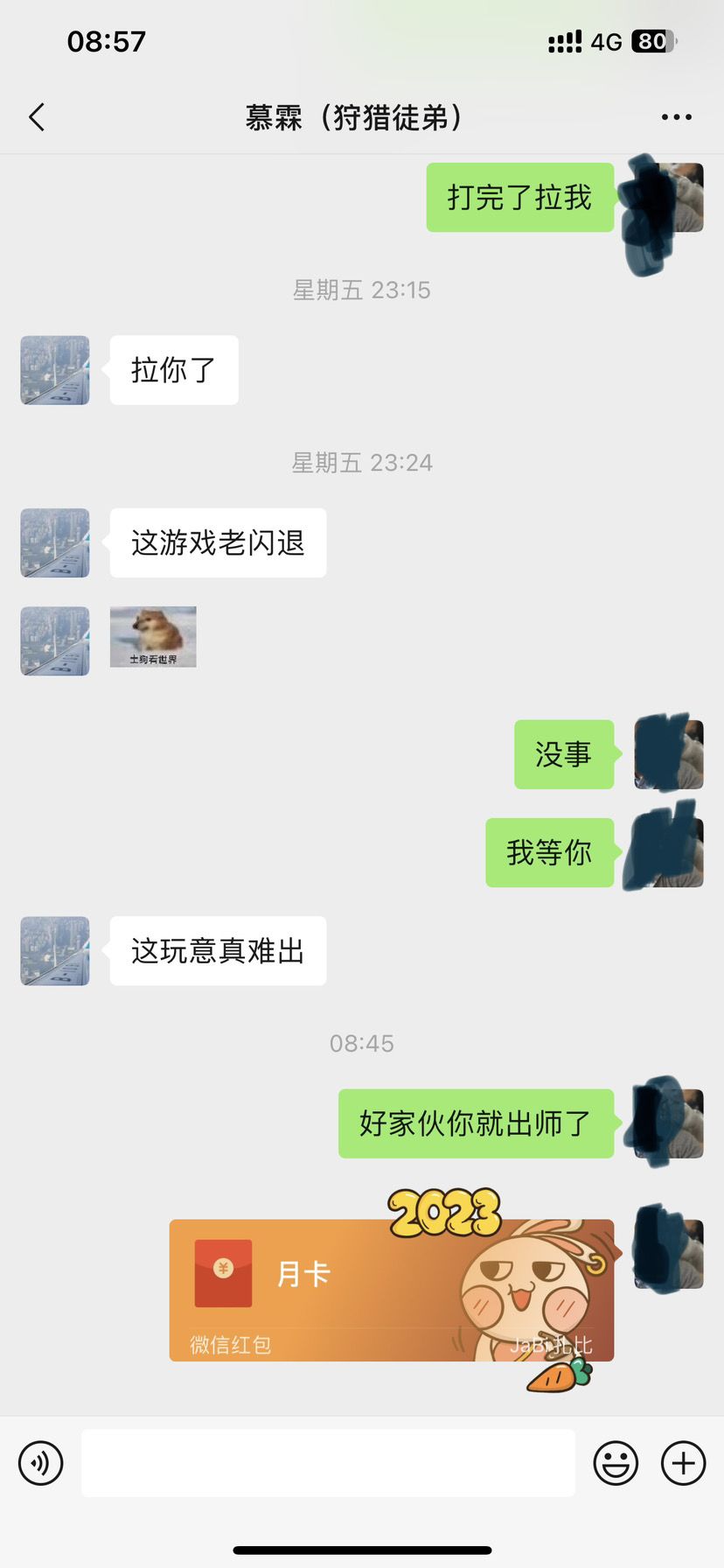 收徒时在世界说徒弟满一个月送月卡,满以为师徒送的那些东西怎么也顶一张月卡了。好家伙,4天徒弟就出师了。我一脸懵逼!